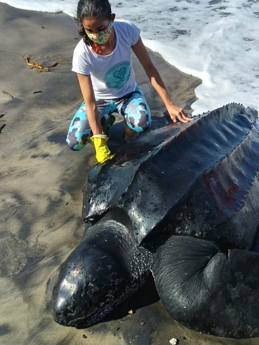 Segundo o Projeto (A)mar, que trabalha no monitoramento e preservação de tartarugas, o animal, que é uma fêmea adulta com cerca de 2 metros, está ameaçado de extinção.